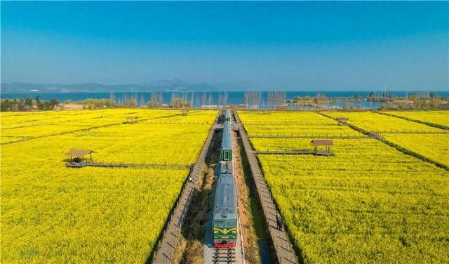 一派片金黄的油菜花正在竞相洞开