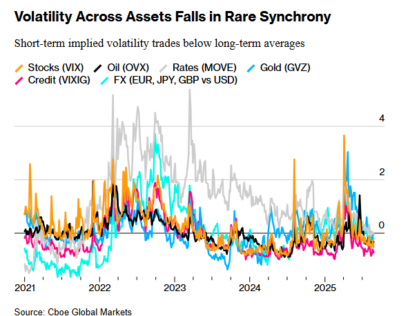 “扫数钞票的波动性同期下降,是自情态愫的发扬,”Capstone Investment Advisors计策投资伙伴关系主宰Peter van Dooijeweert涌现,“好意思联储似乎正承受着来自政府的浩大压力,况且将来12个月关税对经济的影响尚不豁达。议论到将来仍存在诸多不笃定性,市集似乎过于收缩了。”