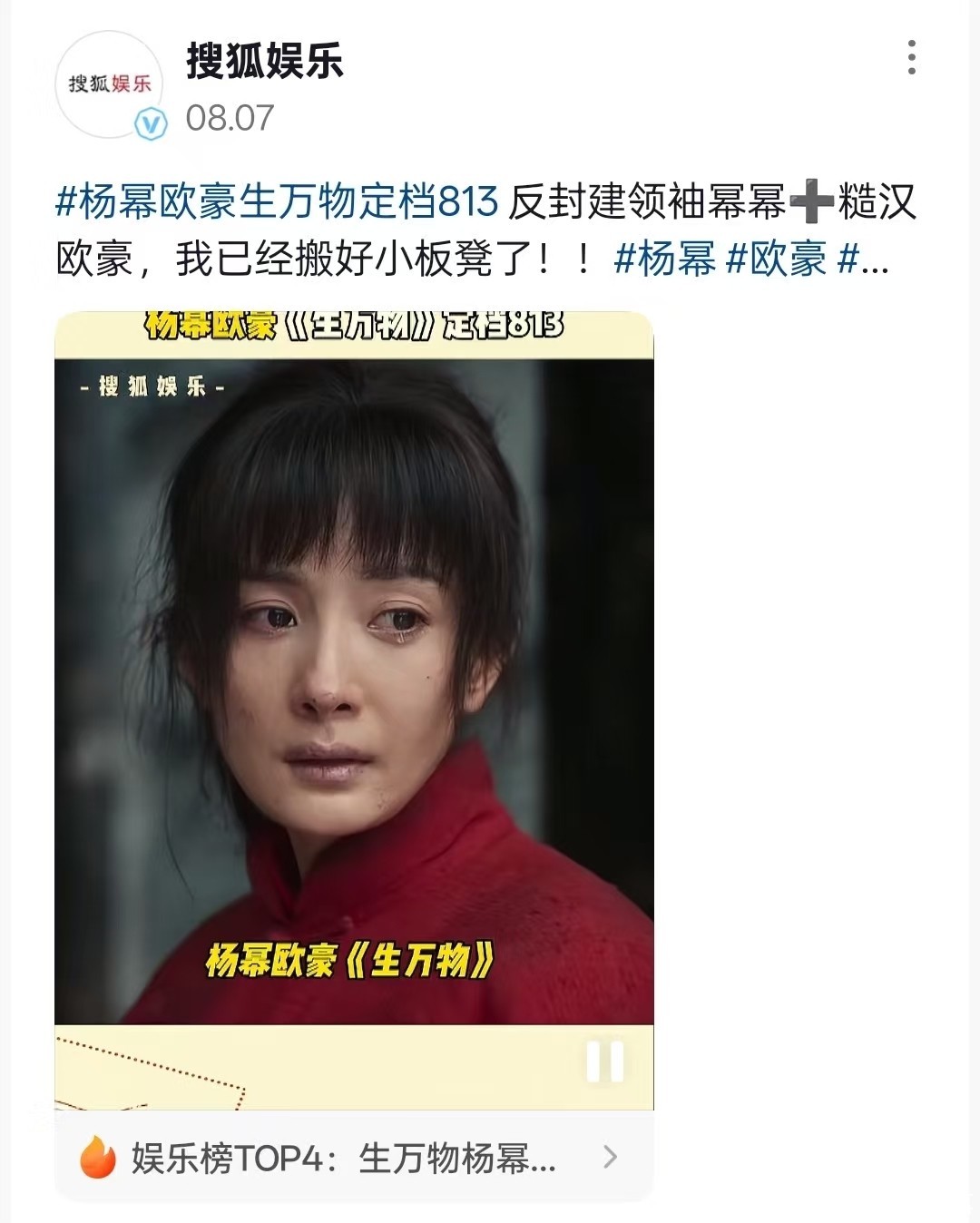 自《生万物》说明将在央视八套黄金时段播出后,杨幂的名字又一次强势总结公众视野。