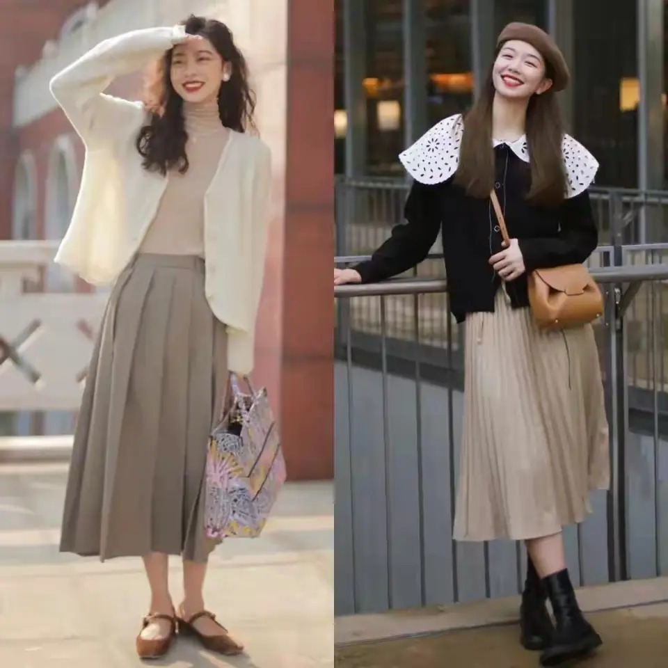 裙子的长度取舍盖过膝盖到小腿肚的位置最好,相宜的表示你的肌肤,更容易蔓延你的腿部线条,同期,再搭配上一对相比有品性的浅口单鞋,玛丽珍鞋,就能增多造型的品性。