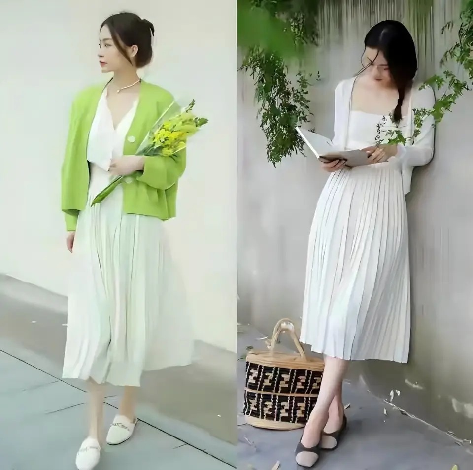 年青貌好意思的你,又领有好体魄,这个技术我们可以取舍一件短款的浅绿色竭诚开衫,搭配一件V领的白色打底衫,下半身径直取舍一条压褶的a字短裙,就能很好的展现你的小蛮腰和大长腿,拉风又抢镜。