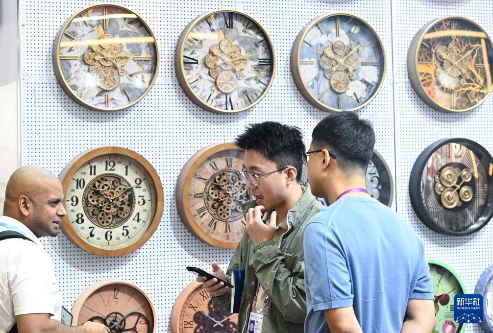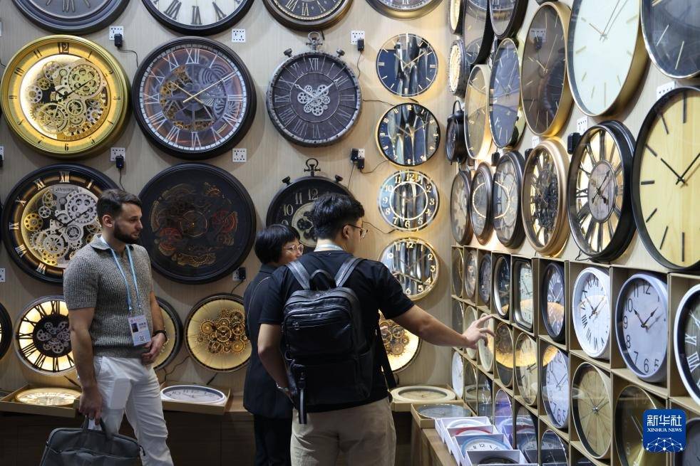 10月23日,客商在广交会上参不雅选购钟表。