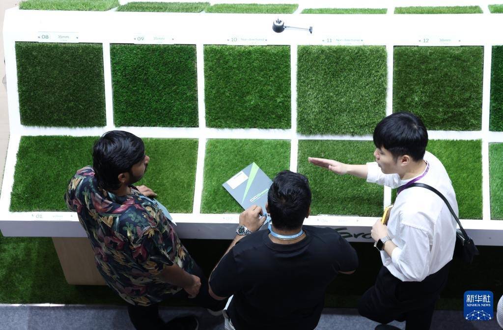 10月23日,客商在广交会上参不雅选购东谈主工草坪。
